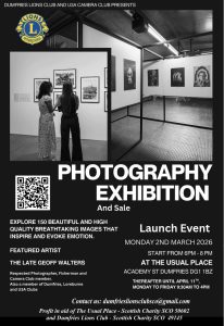 The exhibition is organised byU3A Camera Club and The Dumfries Lions Club in aid of The Usual Place.