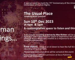 Sunday 10th December 2023 is the 75th Anniversary of the Universal Declaration of Human Rights. We will be marking this by providing a contemplative space within our beautiful building for anyone to come along, to sit, listen and think.