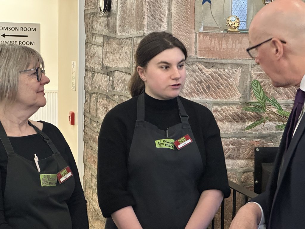 John Swinney MSP, First Minister for Scotland called in early this morning to see us here at The Usual Place before the cafe opened as he was in the region and had heard about the photography exhibition organised by @U3A...