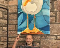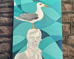 Introducing a new exhibition that’s as colourful and engaging as our cafe! An ‘unusual’ and talented artist has flown in to Dumfries and brought with him a series of portraits of… well, his friends! And who are his friends? His friends just happen to be the local seagulls!