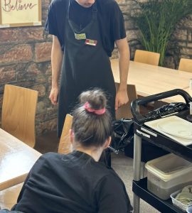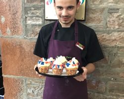 Today is the Ryan’s last day of his school work experience placement. He has done well around the cafe; welcoming customers, checking stock levels, washing dishes, helping in the kitchen, baking, clearing and cleaning tables. He has also completed our Food Health and Hygiene Course with volunteer Mentor, Tadashi.